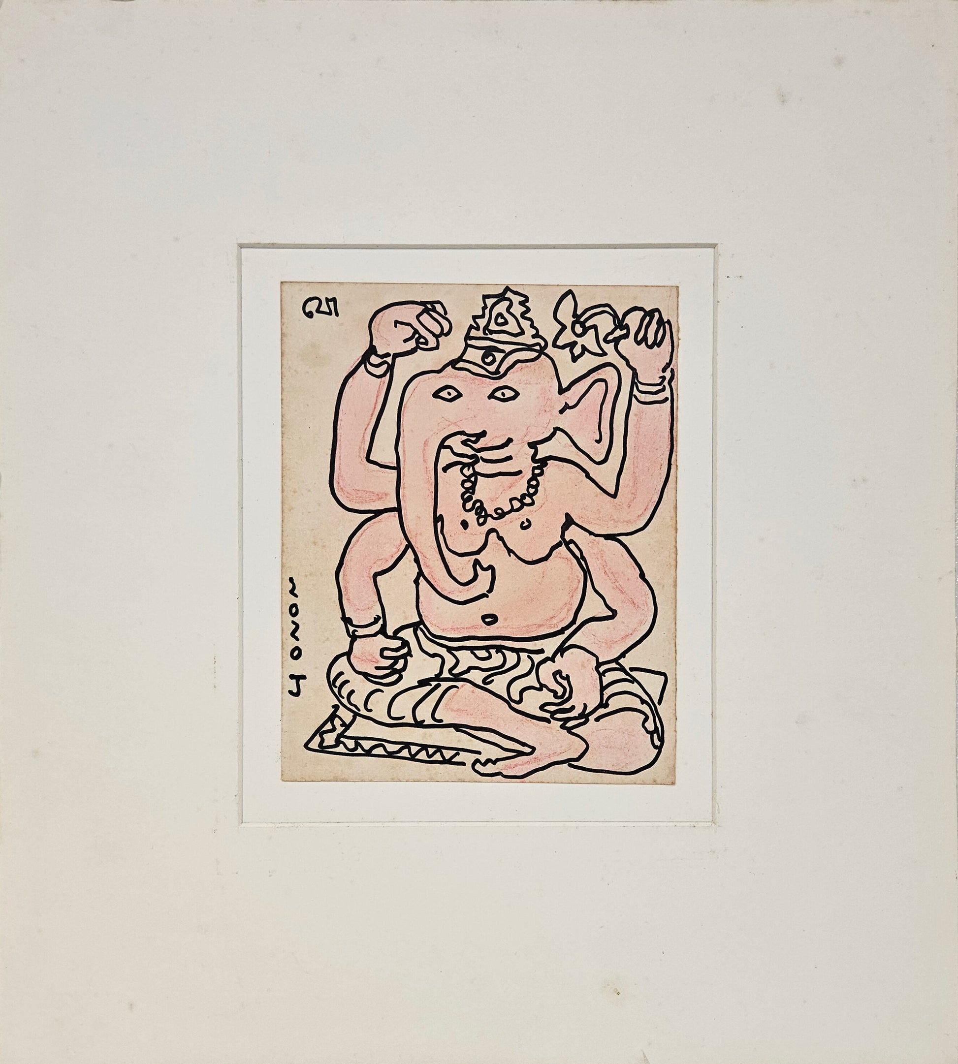 Jogen Chowdhury (born 1939, Faridpur, Bengal—now in Bangladesh) is one of India’s foremost contemporary artists, widely known for his figurative practice. He studied at the Government College of Art & Craft, Calcutta, and later at the École Nationale Supérieure des Beaux-Arts, Paris. These formative experiences shaped both his technical discipline and his approach to drawing. Chowdhury has also played a significant role as an educator, serving as professor and later principal of Kala Bhavana, Visva-Bharati University, Santiniketan. Chowdhury’s work is distinguished by its meticulous cross-hatching technique, developed primarily through pastel, watercolour, and ink. His figurative compositions explore the human condition, often engaging with themes of power, conflict, intimacy, and social behaviour. Drawing from lived experience, observation, and broader socio-political realities, his figures are marked by exaggerated forms and compressed pictorial spaces, lending his works a heightened sense of tension and narrative depth. Over several decades, Jogen Chowdhury has exhibited widely in India and abroad, and his works form part of major public and private collections. He has received numerous honours, including the Padma Shri and Padma Bhushan, in recognition of his contribution to Indian art. Through both his artistic practice and his influence as a teacher, Chowdhury remains a pivotal figure in the development of modern and contemporary Indian art.